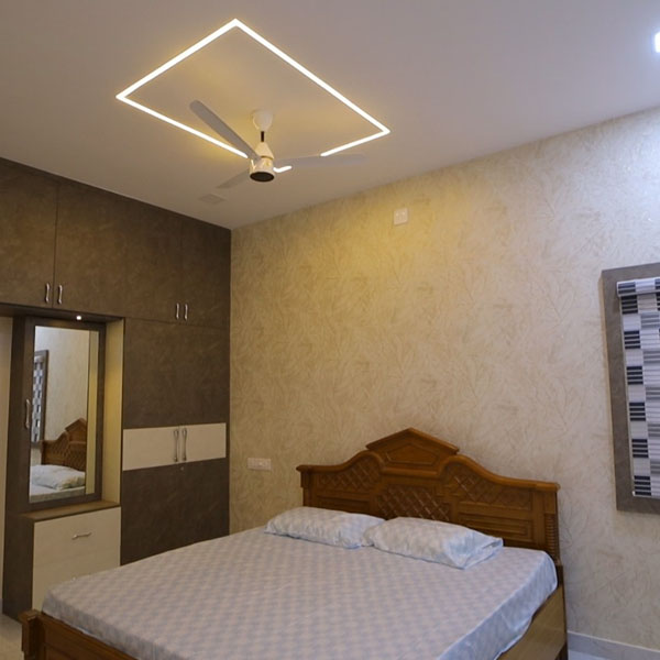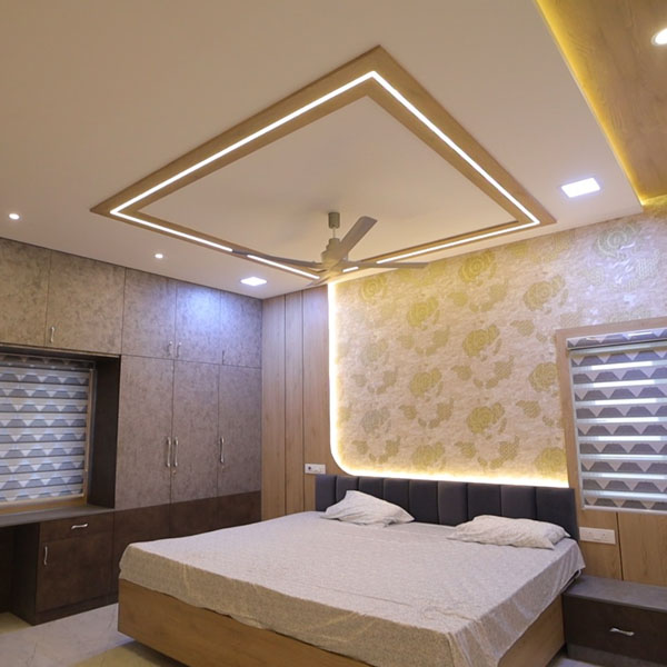 | FIRST FLOOR MASTER BEDROOM | FALL CEILING | PLY AND LAM INTERIOR |